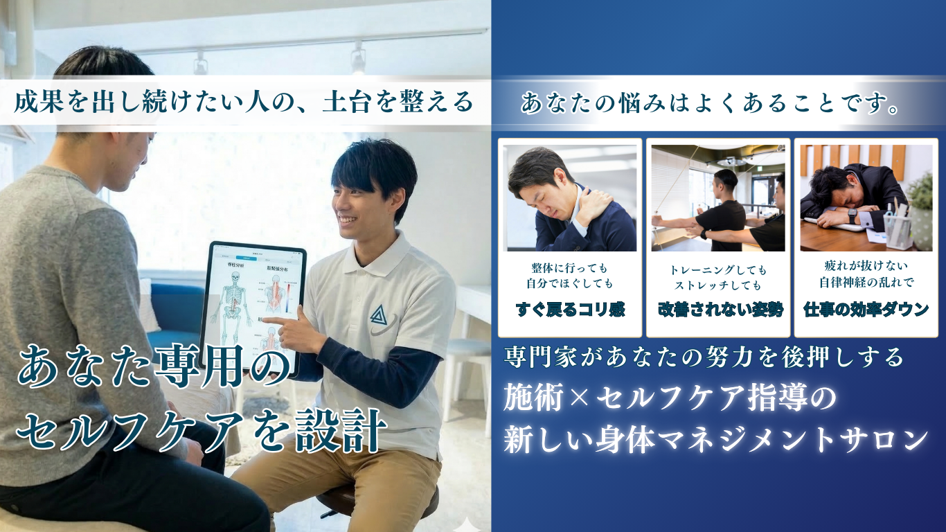 不調のある場所だけをその場しのぎでケアするのではなく、呼吸・姿勢・動き・生活習慣まで含めて、