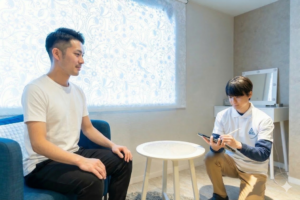 最初に丁寧なカウンセリングを行います。現在の困りごとや生活習慣、今後どうなりたいかなどをお聞きします。